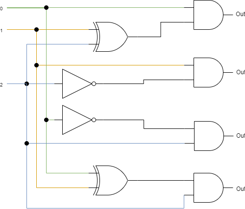 基本情報で論理回路の問題が出てくるため、論理回路の動作を視覚的に見えればわかりやすいのではないかと思い簡単な回路を作成し...