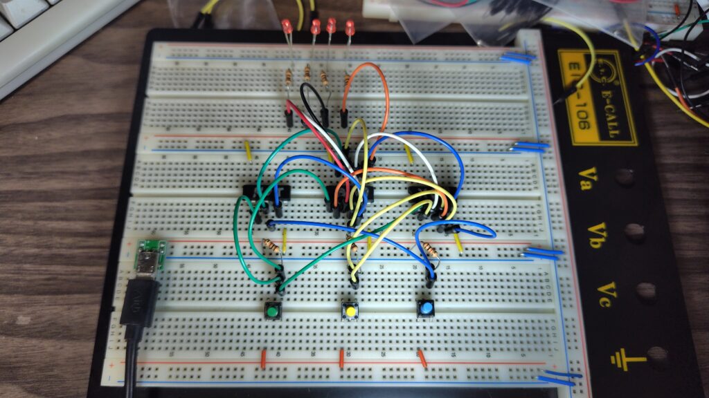 『入力不足に対する論理回路の構築1 ~ 設計編 ~』で設計した論理回路をもとにブレッドボード上で配線していきます。